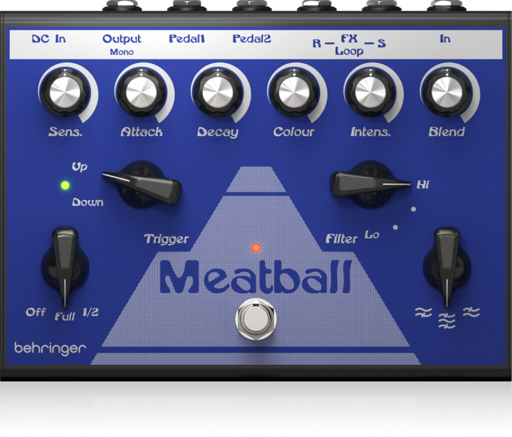 Der Behringer Meatball ist ein umfangreich ausgestattetes analoges Envelope Filter-Pedal, das sich durch seine detaillierte Steuerbarkeit und vielseitigen Routing-Optionen von einfachen Auto-Wah-Pedalen abhebt. Mit seiner dynamischen Filterreaktion, den umfangreichen Einstellmöglichkeiten und der Unterstützung von Expression-Pedalen richtet er sich an alle, die Filtereffekte bewusst als kreatives Werkzeug einsetzen möchten. Der Meatball bietet damit eine flexible Plattform für klassische Funk-Sounds ebenso wie für moderne, experimentelle Klangansätze.