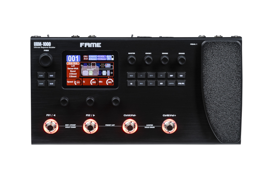 Der URM-1000 von der Music Store Hausmarke FAME tritt ohne Marketing-Allüren an: solide Konstruktion, praxisorientierte Ausstattung und ein Sound, der in seiner Preisklasse erstaunlich konkurrenzfähig ist. Wer schon einmal eine Forum IV oder einen der Vorgänger in der Hand hatte, weiß: FAME setzt bei ihren Gitarrenprodukten auf Qualität! Der Ultimate Response Modeler (kurz: URM) bietet eine kunterbunte Mischung an Clean, Crunch und High Gain Presets, die sich alle sehen lassen. Features wie Bluetooth-Konnektivität, Stereo-XLR und einen leistungsstarken Akku (bis zu 10 Std.) bietet in der Preisklasse bis 200,-€ (und auch ein Stück darüber) kein anderes Modeling-Floorboard.