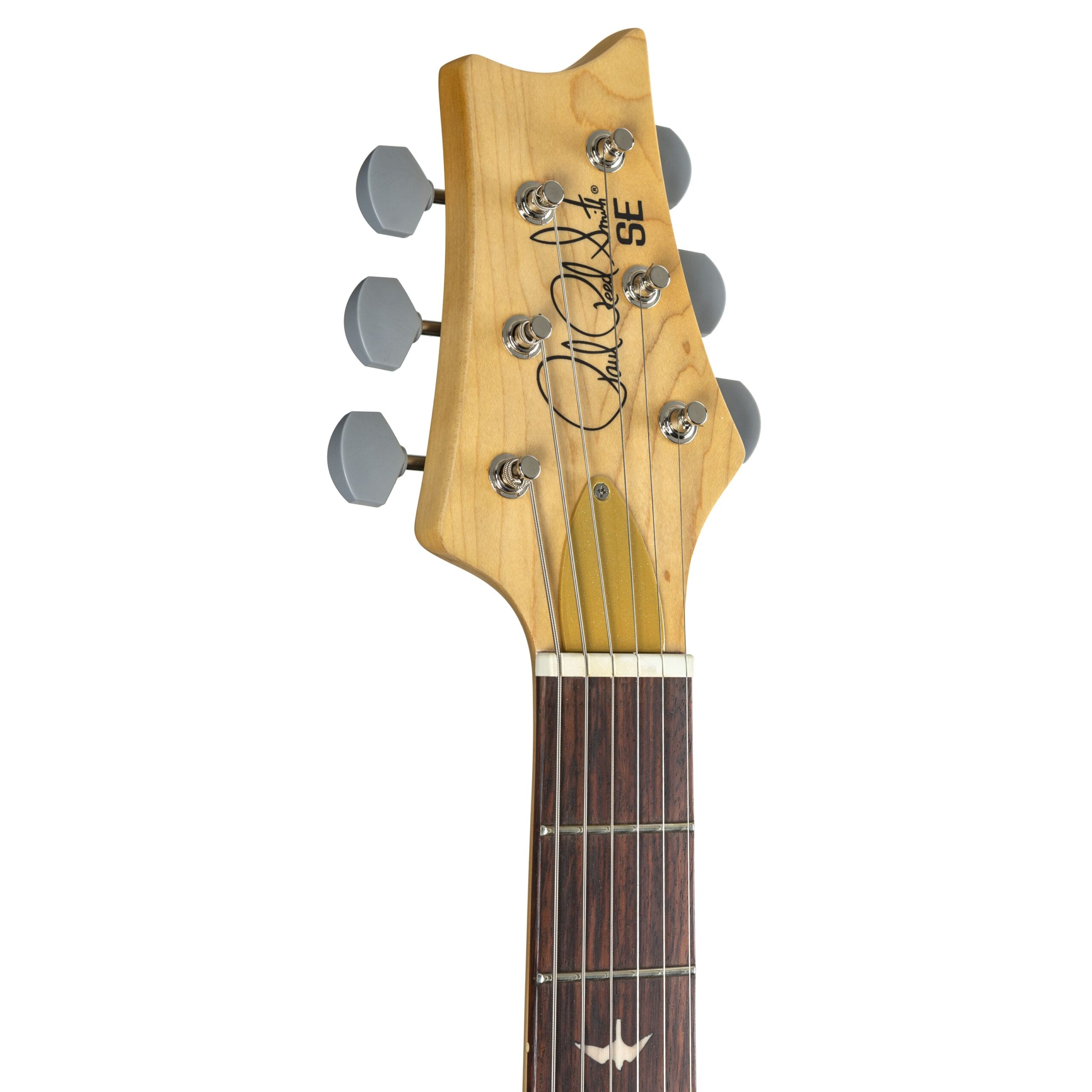 Als zentraler Faktor für Resonanz, Gewicht und Toncharakter schauen wir uns zunächst die Wahl der Hölzer an. Bei der PRS SE Silver Sky besteht der Korpus aus Pappel, ein Holz, das tonal ausgewogen ist und Frequenzen gleichmäßig über Höhen, Mitten und Bässe verteilt. Der Hals ist aus Ahorn, das Griffbrett aus Palisander gefertigt. Die Kombination Ahorn-Hals/Palisander-Griffbrett ist ein Klassiker und sorgt für einen warmen, gut definierten Ton mit angenehm rundem Attack.