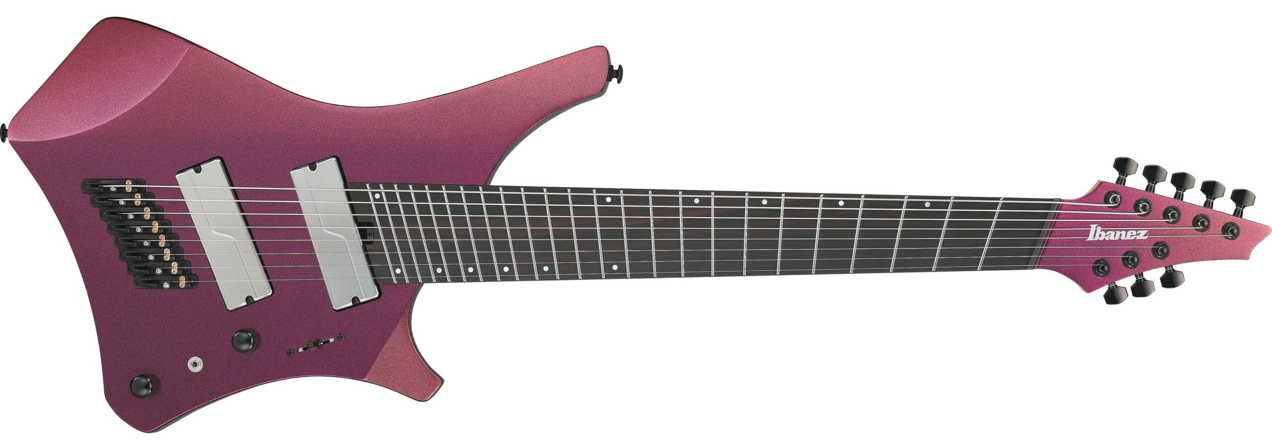 Der Korpus aus amerikanischer Linde fällt durch seine unkonventionelle Bauform auf, die voll und ganz auf Ergonomie ausgelegt ist. Fishman Fluence Modern Humbucker (Alnico am Hals, Ceramic am Steg) liefern brachialle Sounds, die über den integrierten Voicing-Switch unterschiedliche Charaktere von modernen High-Output-Sounds bis hin zu offeneren, dynamischeren Single-Coil-Like-Sounds abdecken. Für die Hardware setzt Ibanez auf Gotoh MG-T Locking Mechaniken sowie die Mono-Rail G2 Bridge, die eine saubere Saitentrennung und stabile Intonation unterstützt.