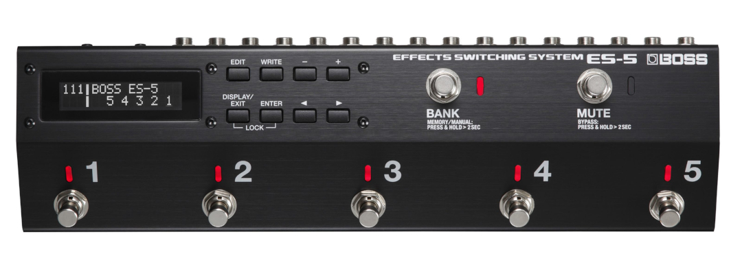 Das Boss ES-5 ist eines der beliebtesten Schaltsysteme für mittlere bis große Pedalboards. Der analoge Signalweg, fünf flexible Loops, 200 Presets, Buffer-Schaltungen, MIDI-Unterstützung und die Möglichkeit, die Effektreihenfolge frei zu bestimmen, machen das ES-5 extrem vielseitig.