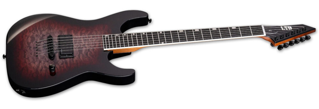 Dieses Instrument löst das Versprechen ein, das die Firma ESP seit jeher hält: Vom ersten Ton an freuen wir uns auf ein Riff-Gemetzel vom Feinsten! Der Griffbrettradius gehört zwar nicht zu den Extremfällen, ist aber modern flach gehalten und lädt somit zum Shredden ein. Die großzügigen Cutaways bieten komfortablen Zugang zu allen Bünden. Schnelle Läufe und extreme Bendings gehen leicht von der Hand. Auch das Sweep-Picking fällt leichter – die Gitarre hilft dir förmlich, endlich die Arpeggios zu spielen, die du seit Jahren übst 😉