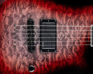 Die Gitarre kommt in ESP-typischer M-Form mit ergonomischen Cutaways im Erlenkorpus und abgeschrägtem Body-Neck-Joint, um den Zugang zu den höheren Lagen zu erleichtern. Die Deep Blood Moon-Lackierung glüht tiefrot auf der Wölkchenahorndecke und der dreistreifige „roasted“ Ahornhals mit reversed Headstock und LTD-Locking-Mechaniken rundet das Instrument stylisch ab. If looks could kill – dann hätte diese Gitarre schon einige Opfer auf dem Gewissen.