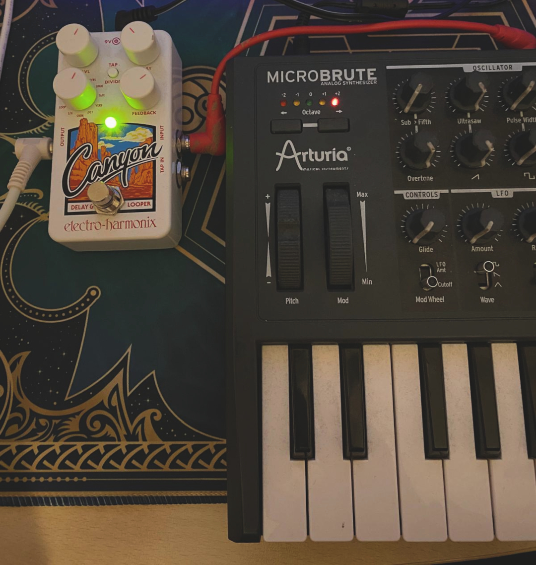 Das Electro Harmonix Canyon Delay & Looper-Pedal ist für mich eines der vielseitigsten Tools im Setup. Besonders der Reverse- und Tape-Delay-Modus sind essenziell für verträumte LoFi-Soundscapes. Reverse-Delays lassen Single Notes wie rückwärts atmende Pads wirken, während das Tape-Delay mit leichtem „Wow & Flutter“ die analoge Unperfektion simuliert, die LoFi so charmant macht.